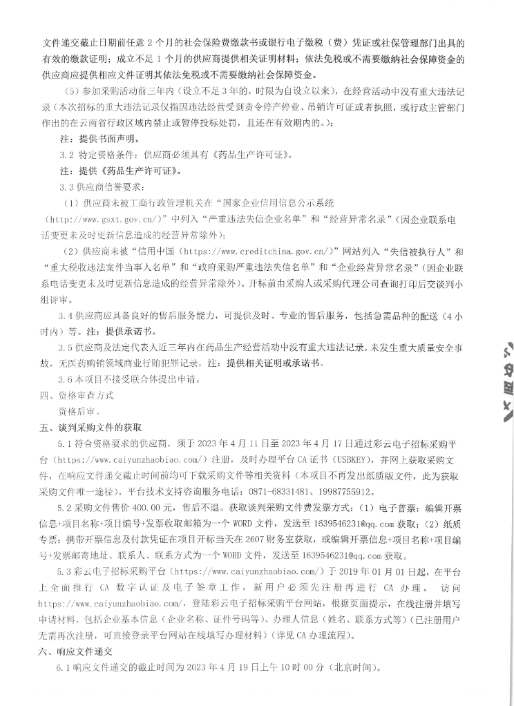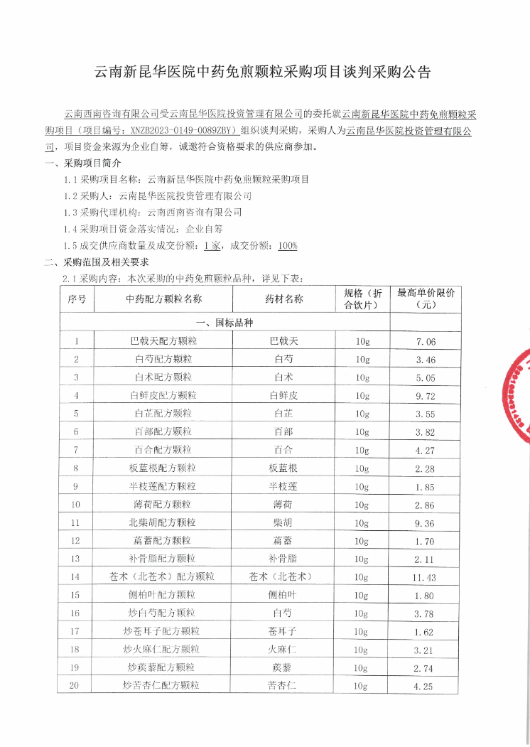 【云南省第一人民医院新昆华医院】云南新昆华医院中药免煎颗粒采购项目谈判采购公告