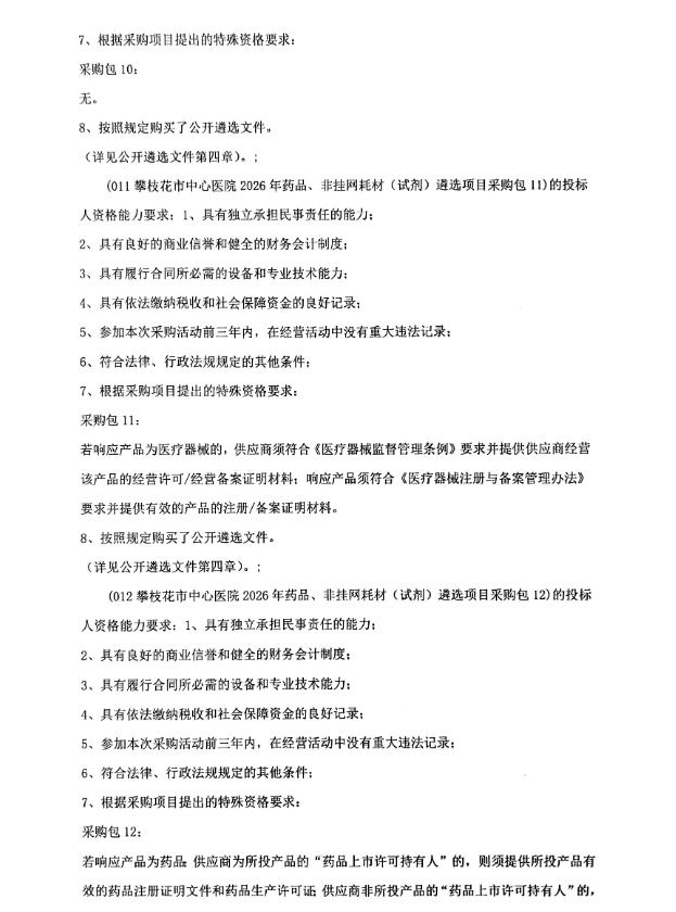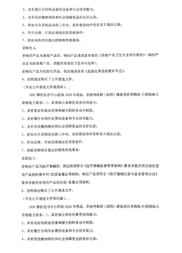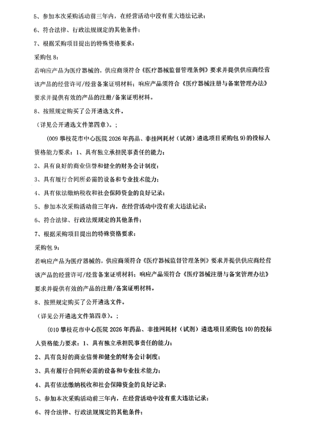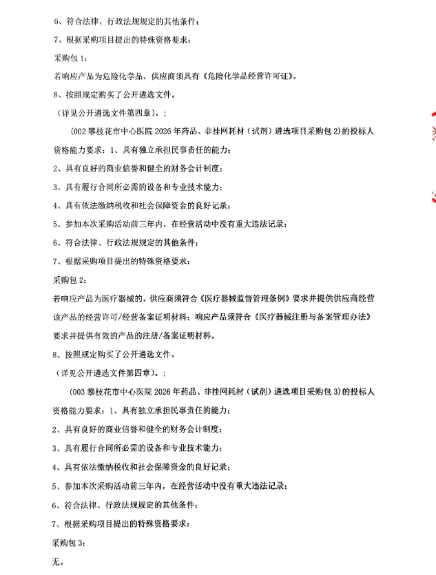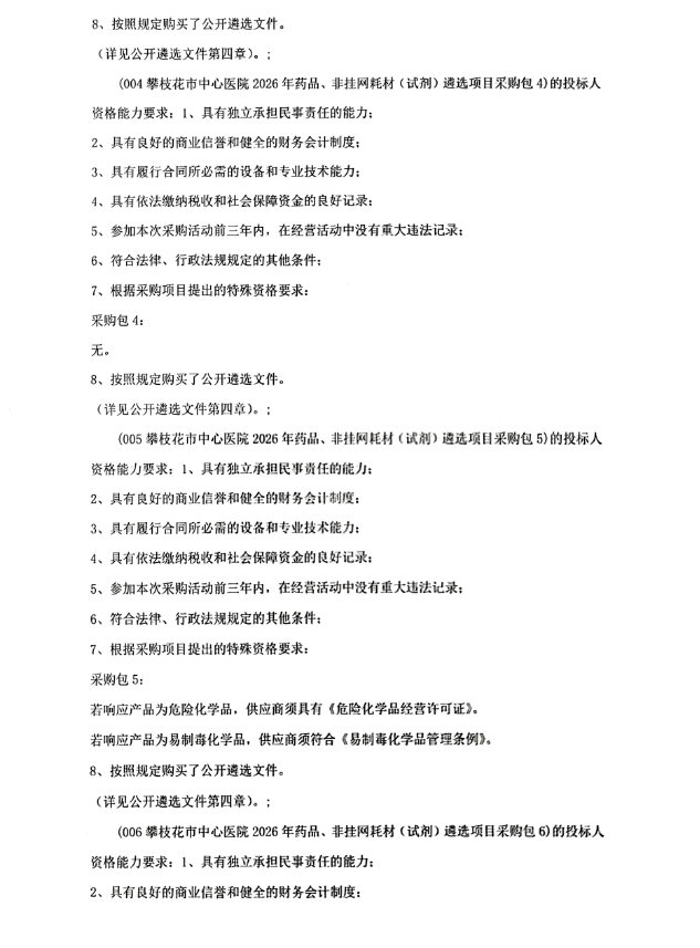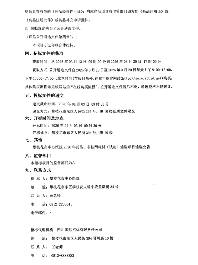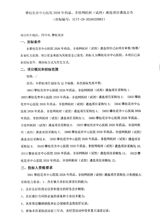 【攀枝花市中心医院】四川省攀枝花市中心医院2026年药品、非挂网耗材(试剂)遴选项目遴选公告