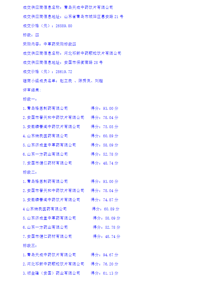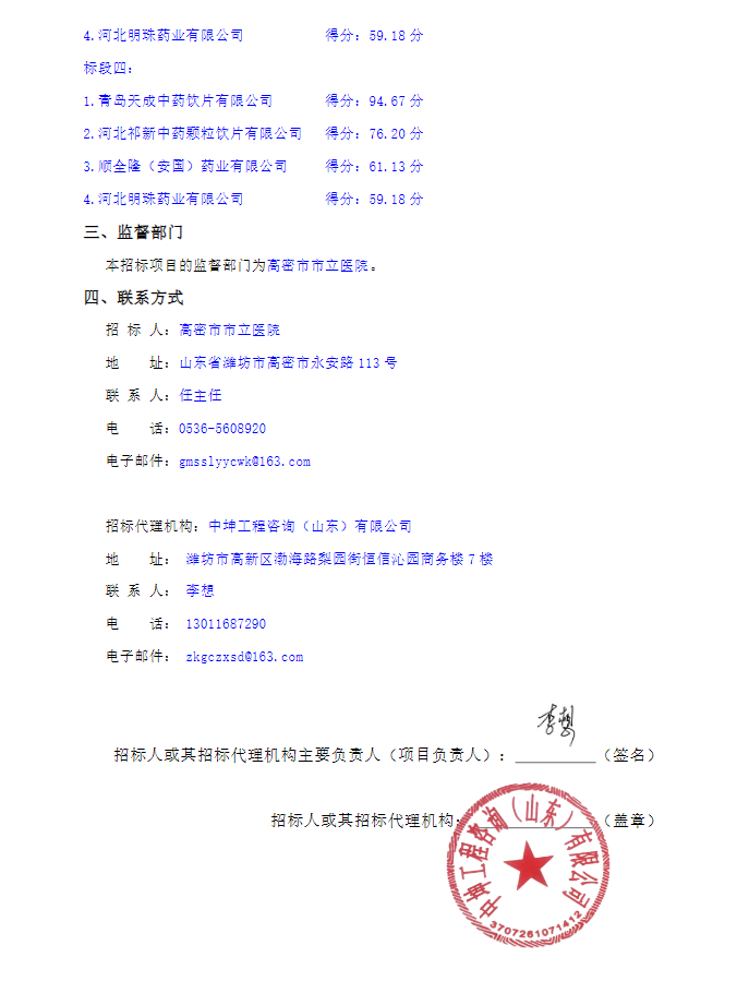 【潍坊市高密市市立医院】山东省潍坊市高密市市立医院中草药采购项目成交结果公告