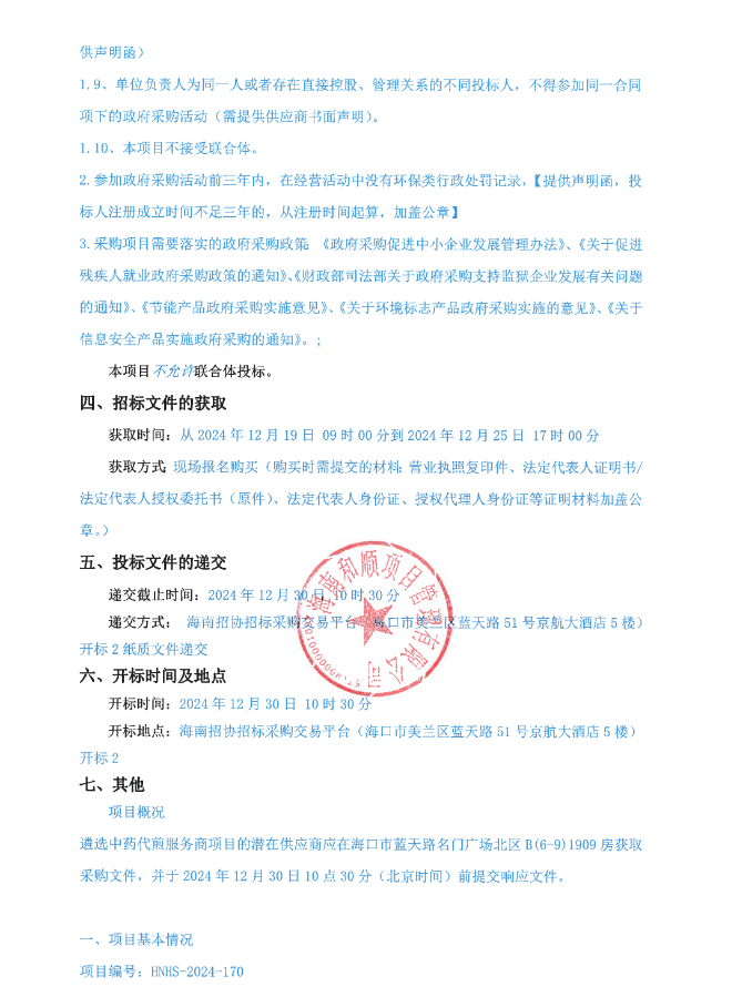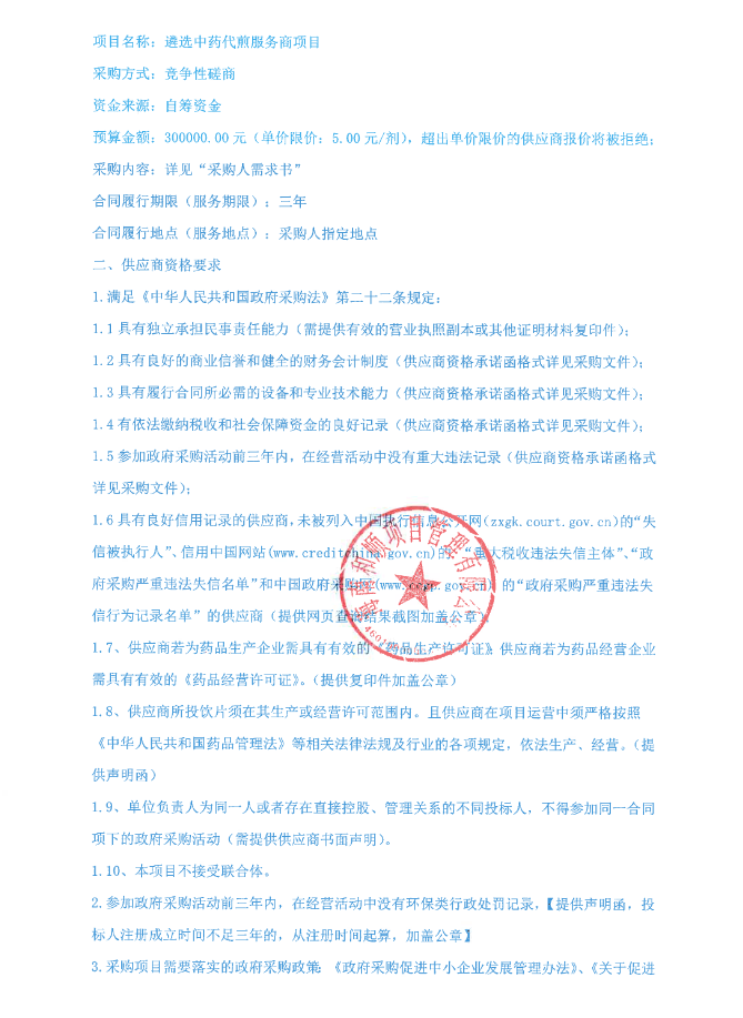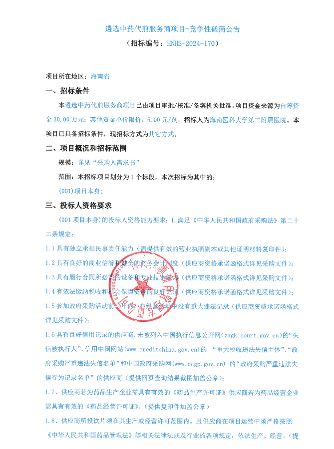 【海南医科大学第二附属医院】海南医科大学第二附属医院遴选中药代煎服务商项目-竞争性磋商公告