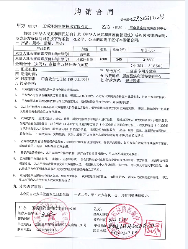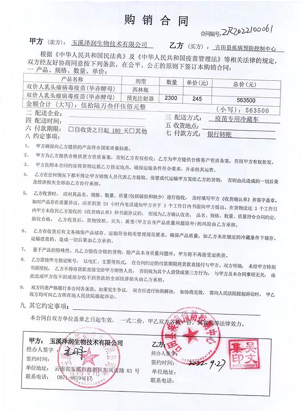 【福建省疾病预防控制中心】人乳头瘤病毒(HPV)疫苗采购项目采购分签合同(20221011)