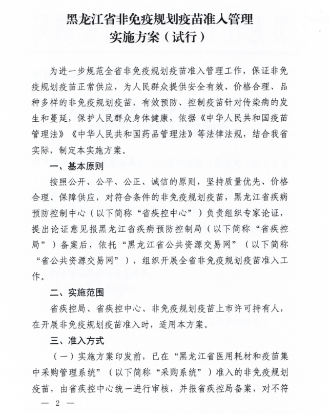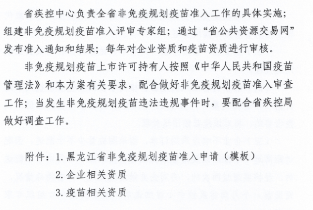 黑龙江省非免疫规划疫苗准入管理实施方案(试行)