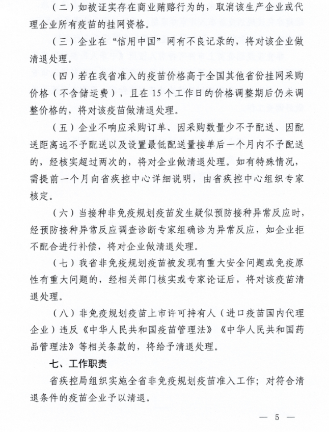 (一)凡在我省“采购系统”以外销售非免疫规划疫苗的企业,证据确凿的,取消该疫苗在我省的挂网资格。