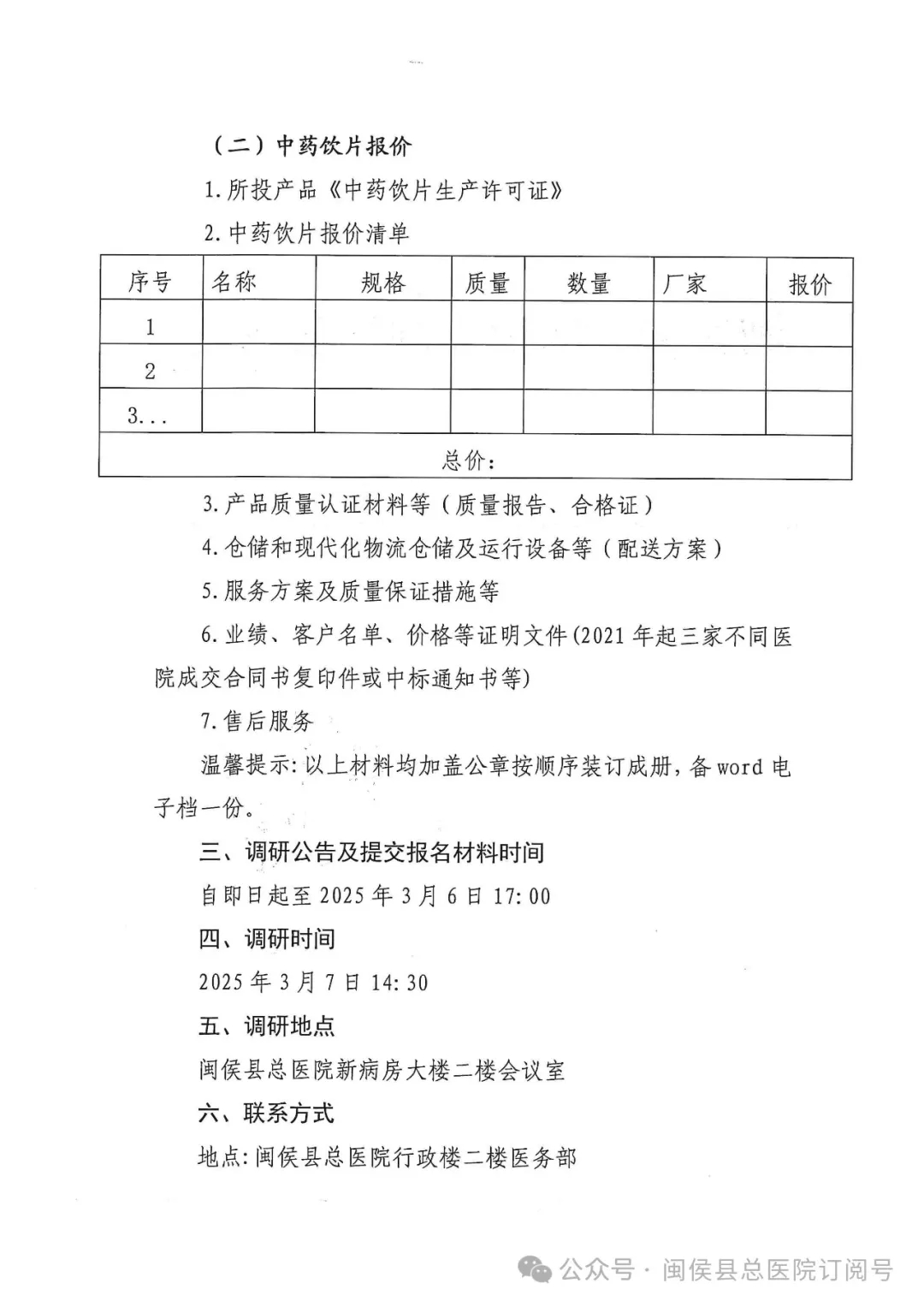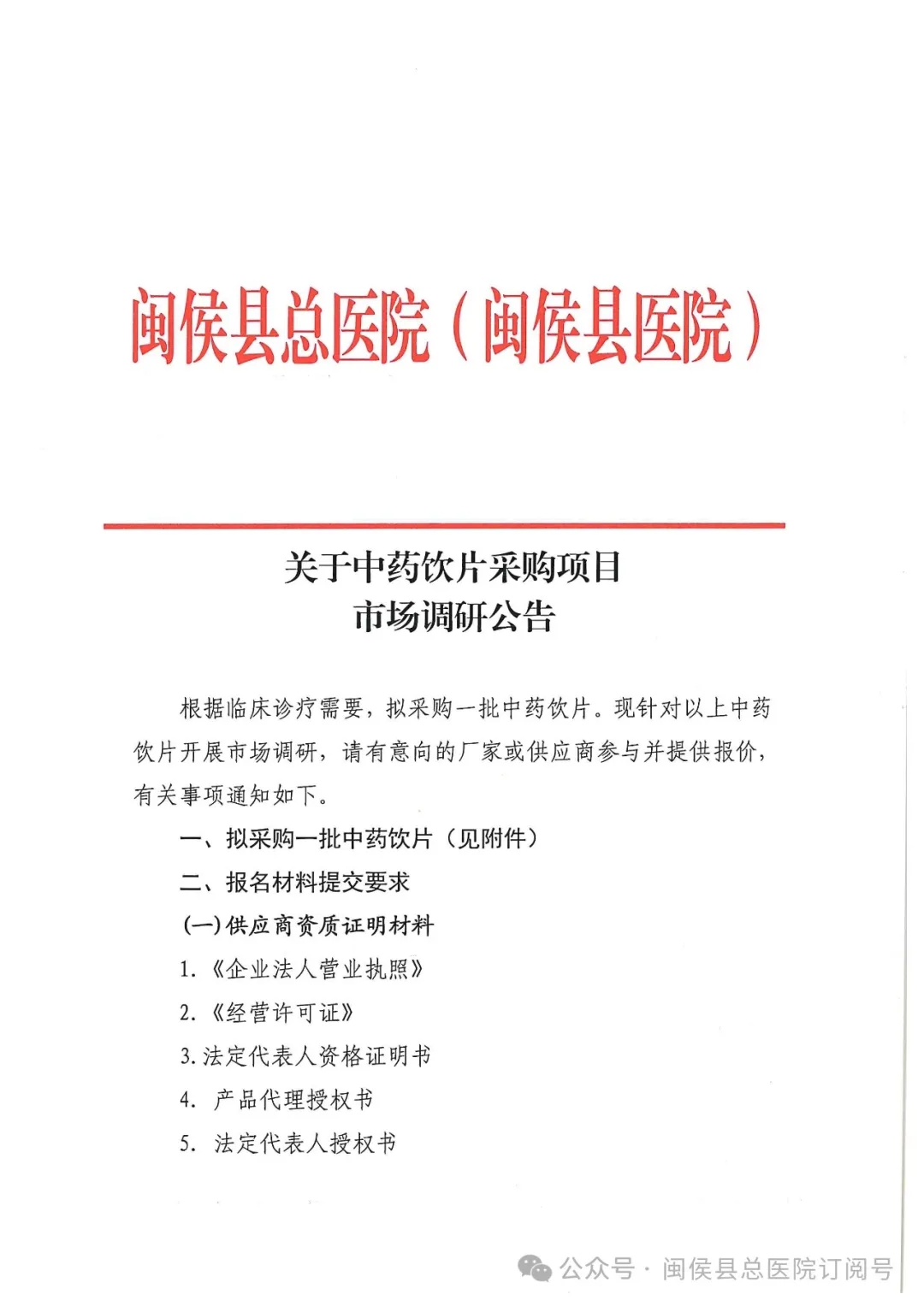 【福州市闽侯县总医院】福建省福州市闽侯县总医院关于中药饮片采购项目市场调研公告
