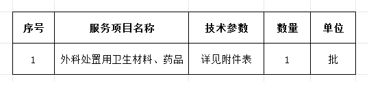 根据我单位业务工作开展的需要,拟对《外科处置用卫生材料、药品一批》项目进行采购,欢迎具备资质、有意向的供应商按照询价日期到场询价或寄报价单到邮箱(收稿截止时间为公告日期最后一天23:59)。