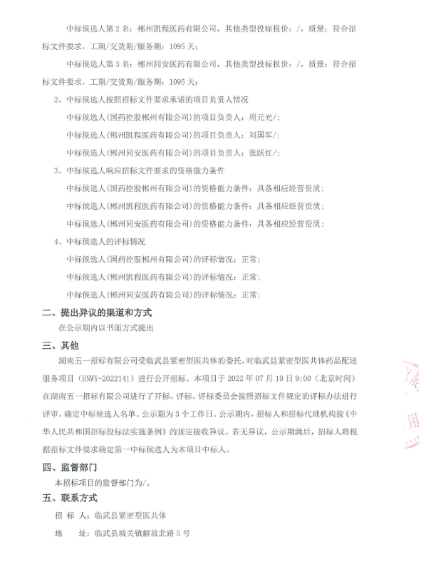【郴州市临武县紧密型医共体】郴州市临武县紧密型医共体药品配送服务项目