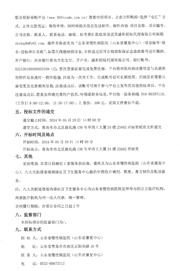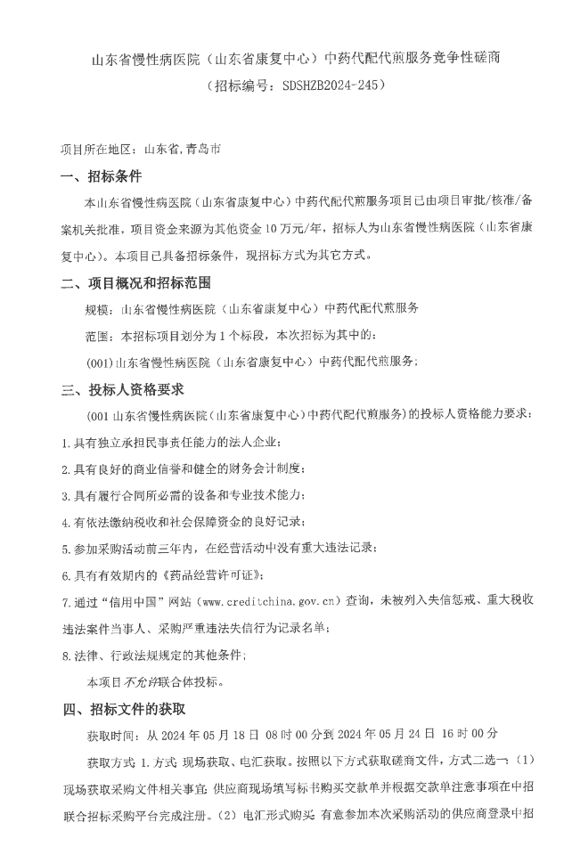【山东省慢性病医院】山东省慢性病医院(山东省康复中心)中药代配代煎服务竞争性磋商