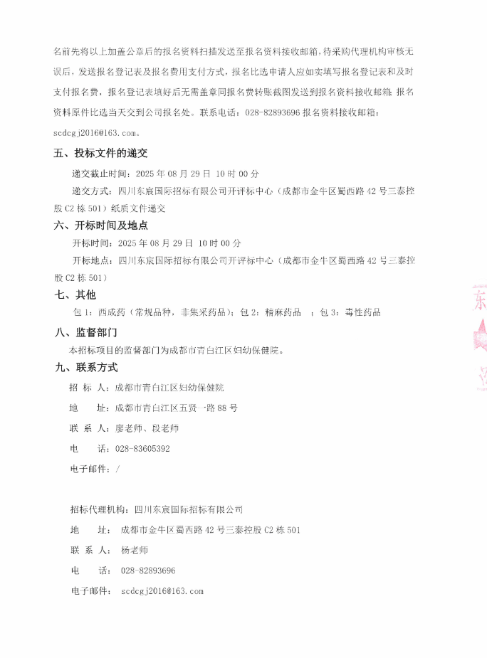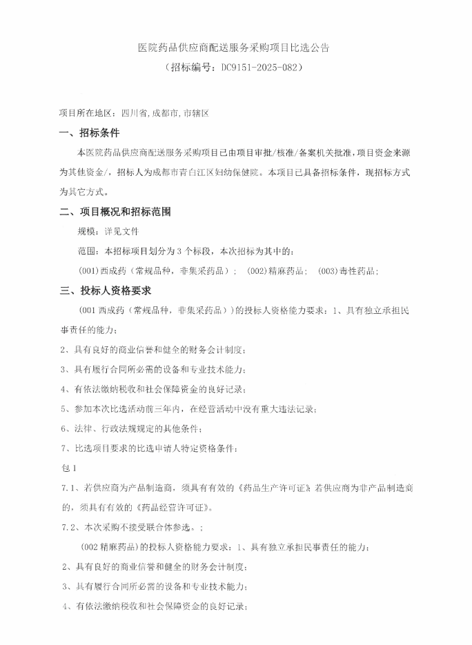 【成都市青白江区妇幼保健院】四川省成都市青白江区妇幼保健院医院药品供应商配送服务采购项目比选公告