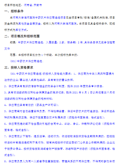 【淮河医院】河南大学淮河医院中药饮片供应商遴选项目竞争性磋商公告