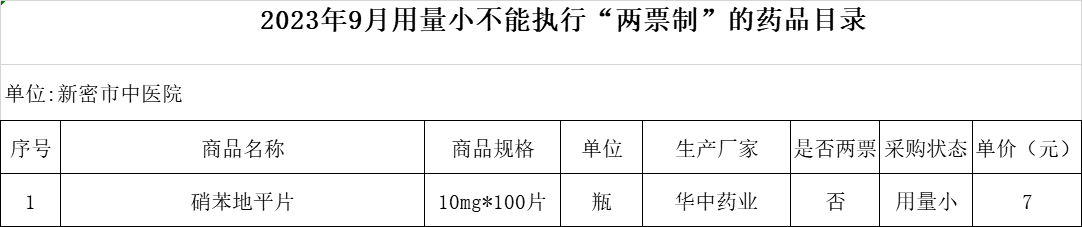 【郑州市新密市中医院】河南省郑州市新密市中医院2023年9月用量小不能执行“两票制”的药品目录