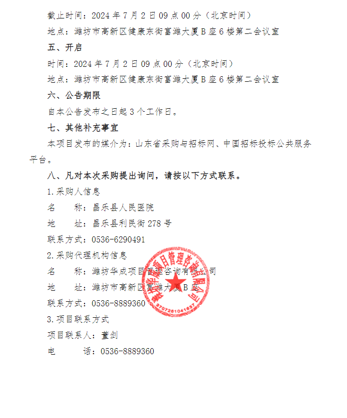 所属项目:山东省潍坊市昌乐县人民医院院标
