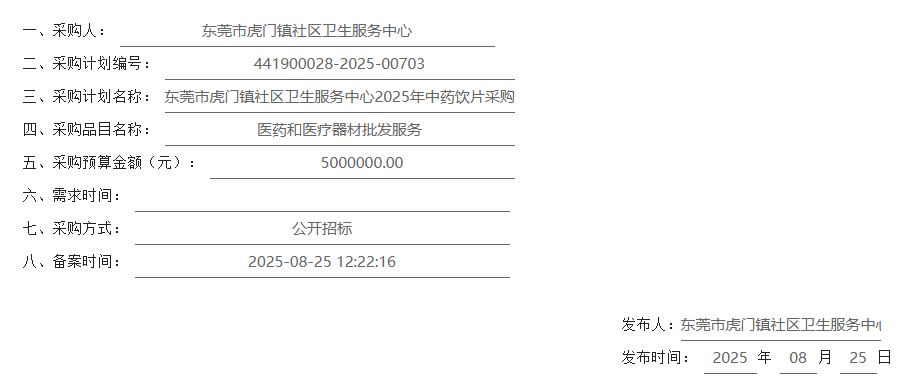 【东莞市虎门镇社区卫生服务中心】广东省东莞市虎门镇社区卫生服务中心2025年中药饮片采购项目