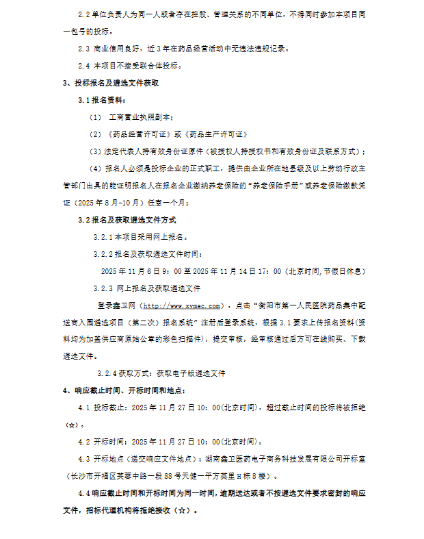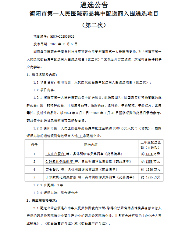 【衡阳市第一人民医院】湖南省衡阳市第一人民医院药品集中配送商入围遴选项目(第二次)遴选公告