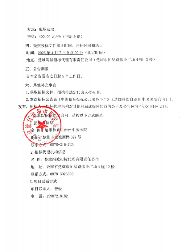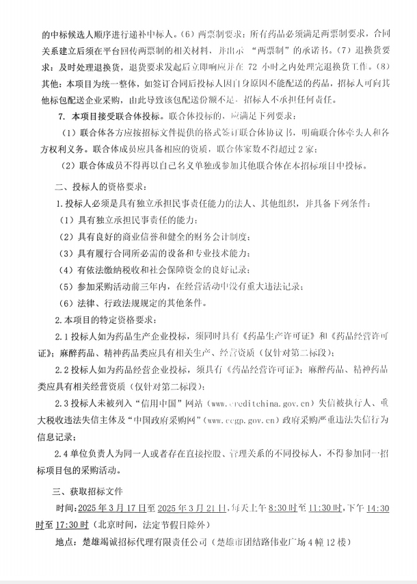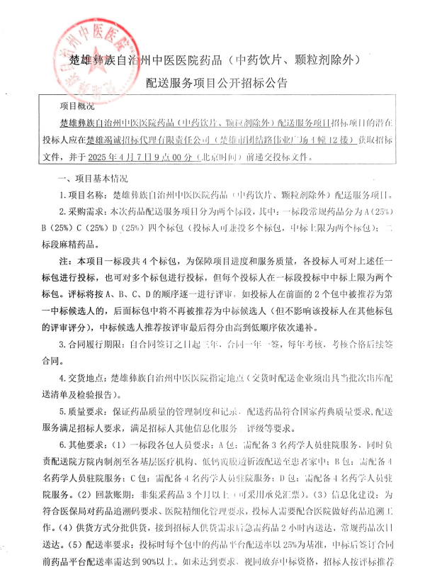 【楚雄彝族自治州中医医院】云南省楚雄彝族自治州中医医院药品(中药饮片、颗粒剂除外)配送服务项目公开招标公告
