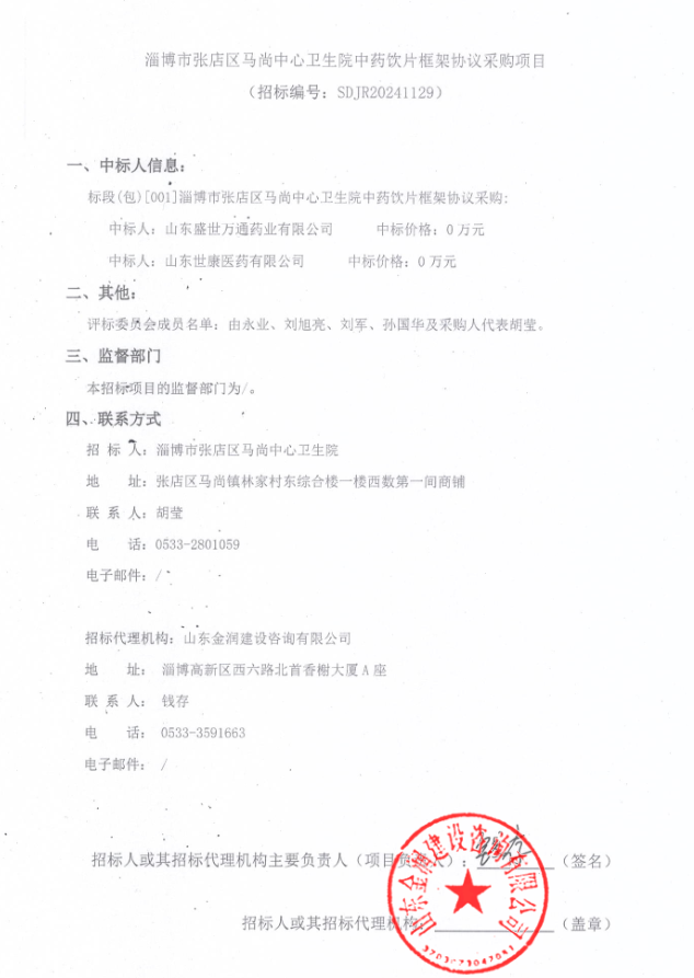 【淄博市张店区马尚中心卫生院】山东省淄博市张店区马尚中心卫生院中药饮片框架协议采购项目