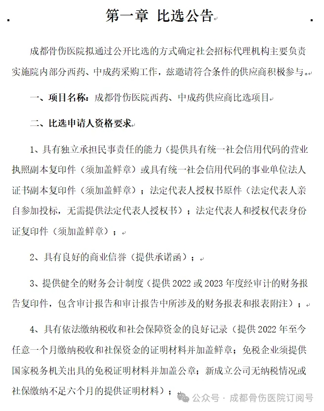 二、项目名称:成都骨伤医院西药、中成药供应商比选项目