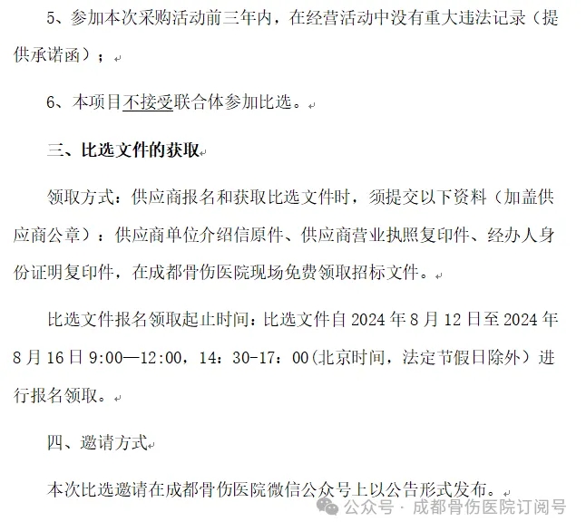 我院拟对“成都骨伤医院西药、中成药供应商比选项目”进行院内比选,欢迎符合条件的供应商前来参加比选,现将有关事项公告如下:
