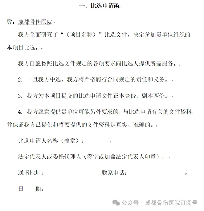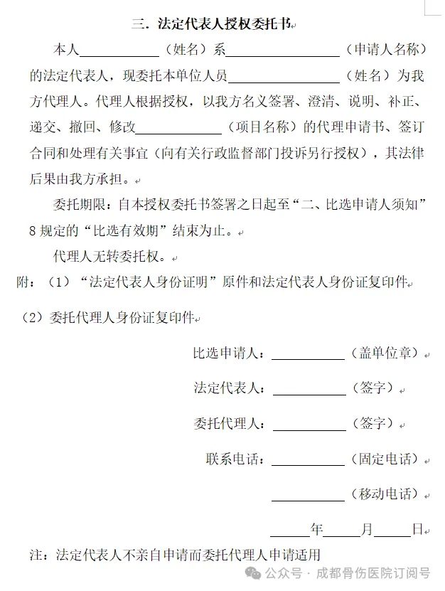 递交地址:成都骨伤医院行政5楼设备科。