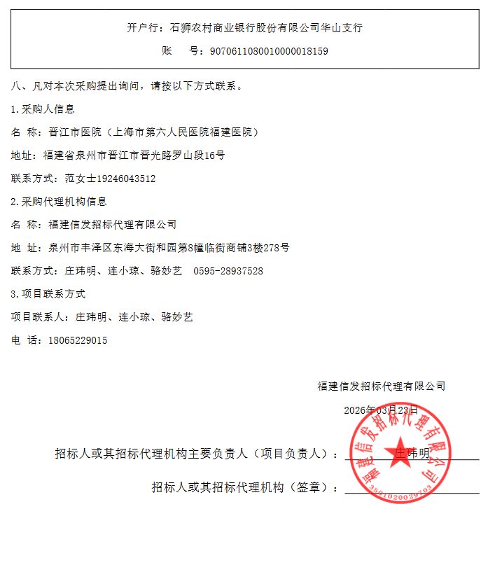所属项目:福建省泉州市晋江市医院晋南分院院