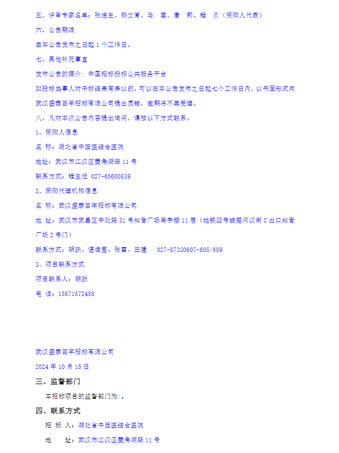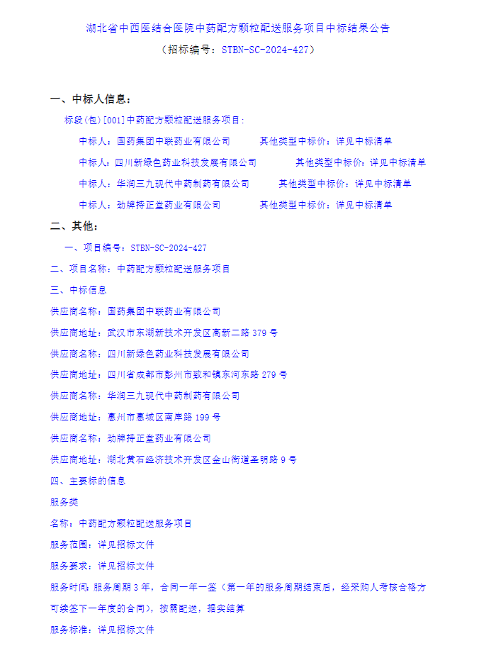 【湖北省中西医结合医院】湖北省中西医结合医院中药配方颗粒配送服务项目中标结果公告