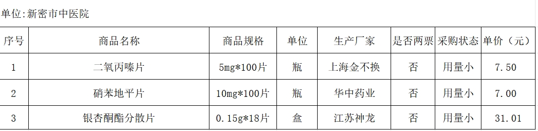 【郑州市新密市中医院】河南省郑州市新密市2024年3月用量小不能执行“两票制”的药品目录