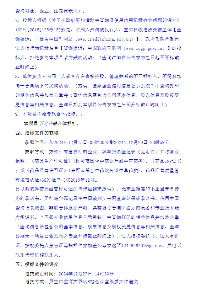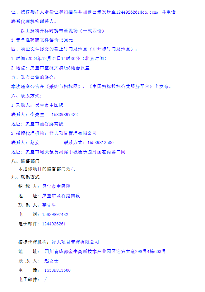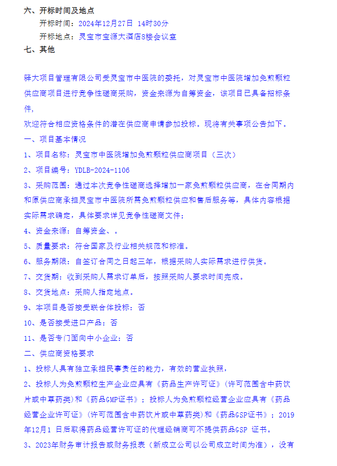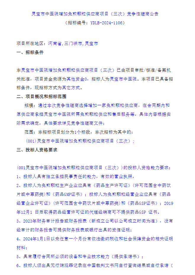 【三门峡市灵宝市中医院】河南省三门峡市灵宝市中医院增加免煎颗粒供应商项目(三次)竞争性磋商公告