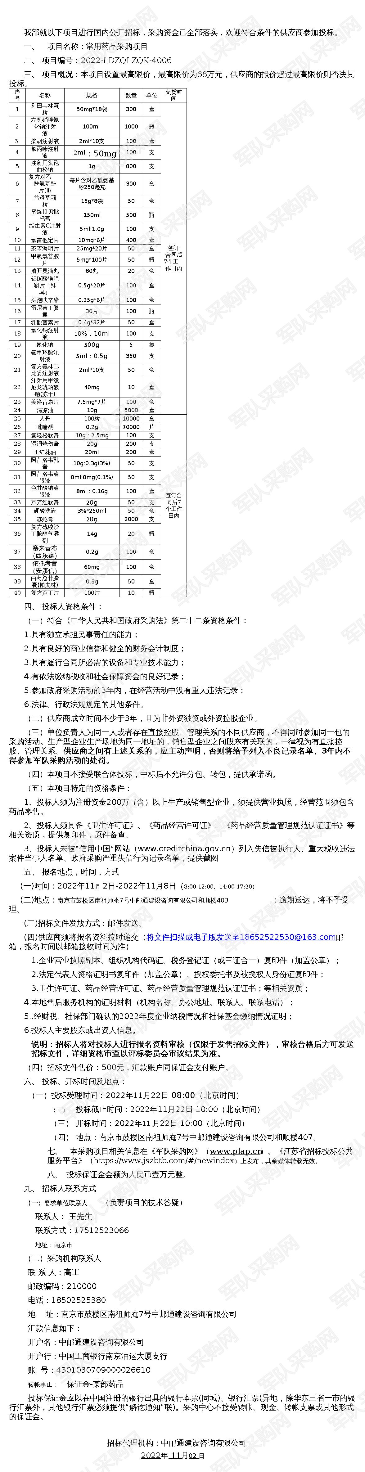 【军队采购网】常用药品采购招标(2022-LDZQLZQK-4006)