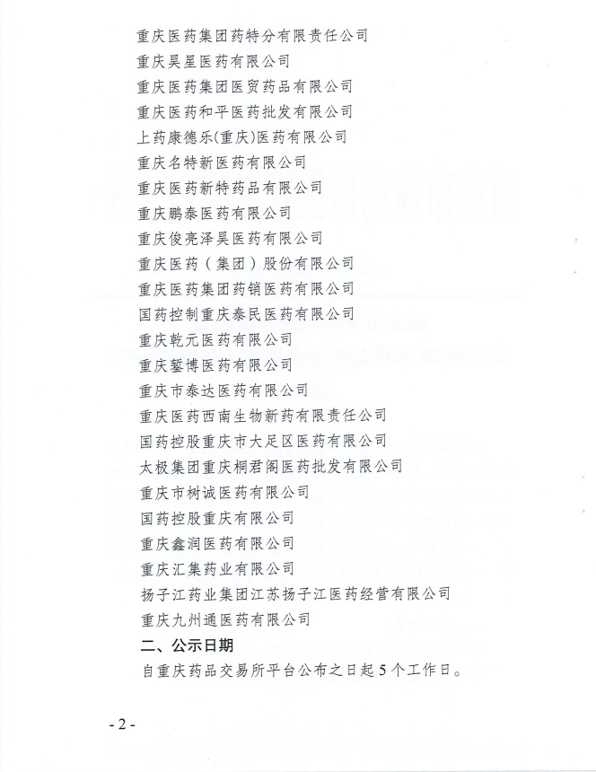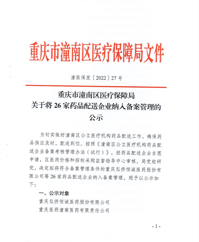 【重庆】重庆市潼南区医疗保障局关于将26家药品配送企业纳入备案管理的公示