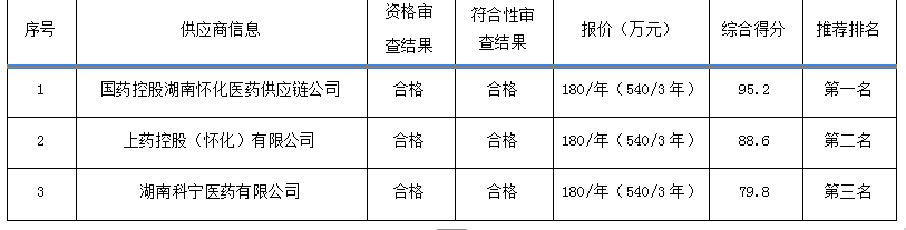 怀化市中医医院的怀化市中医医院大输液配送服务公开招标于2025年06月04日在怀化市公共资源交易中心评标结束,评标办法采用综合评分法。经评标委员会评审,现将中标结果公示如下:
