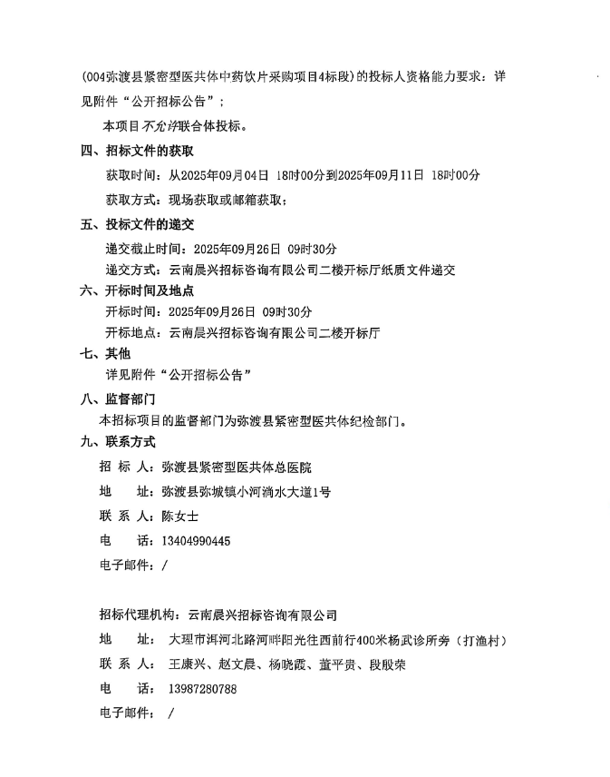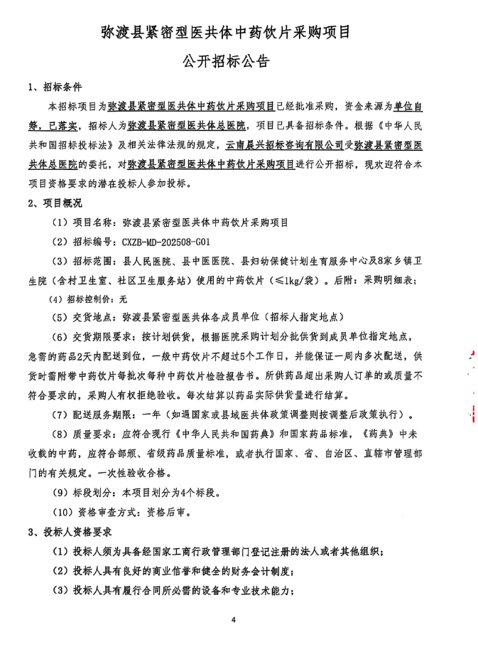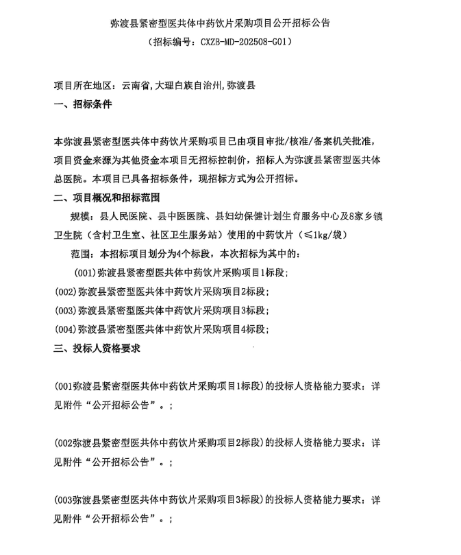 【大理白族自治州弥渡县中医医院】云南省大理白族自治州弥渡县紧密型医共体中药饮片采购项目公开招标公告