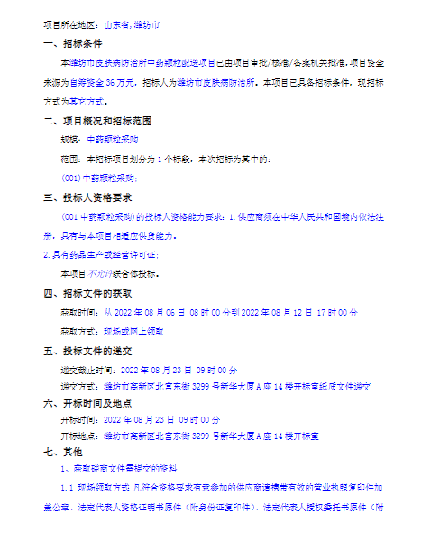 【潍坊市皮肤病防治所】潍坊市皮肤病防治所中药颗粒配送项目竞争性磋商公告