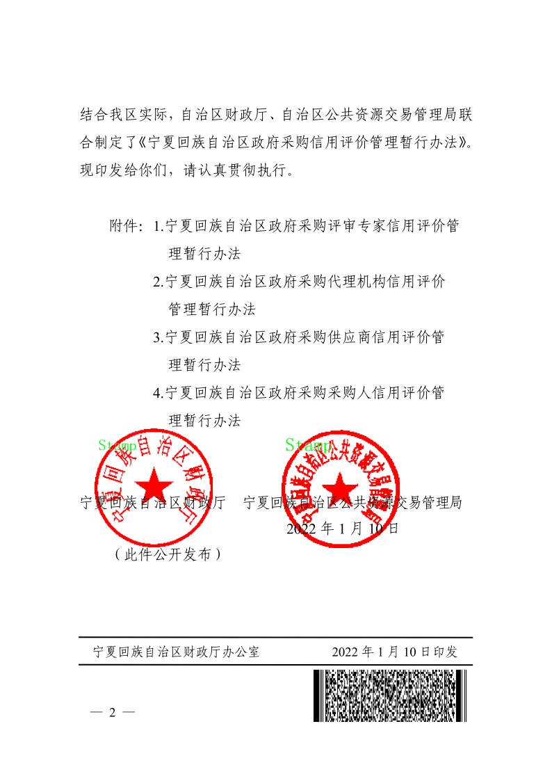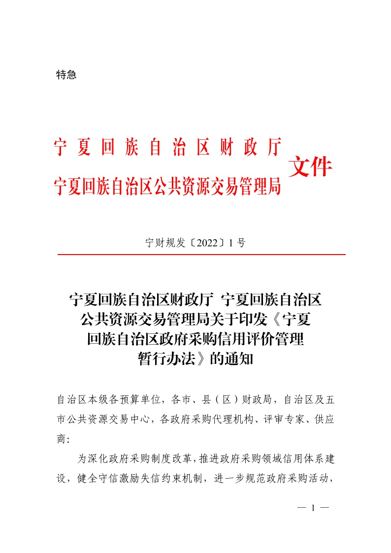 【宁夏】宁夏回族自治区关于印发《宁夏回族自治区政府采购信用评价管理暂行办法》的通知