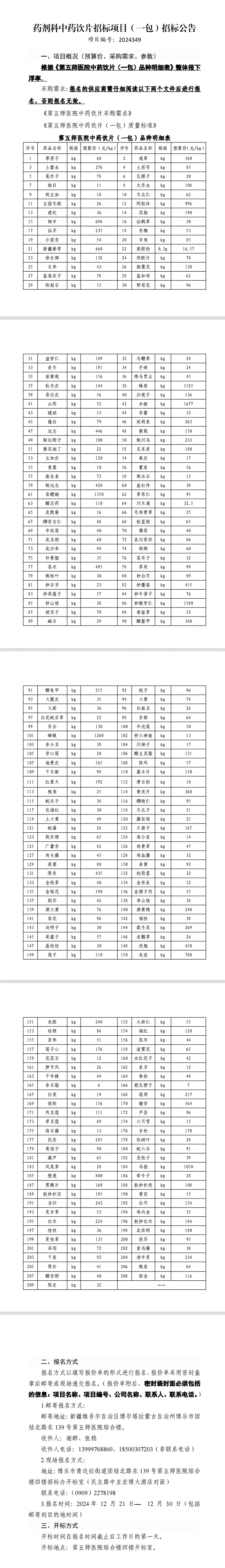 【新疆生产建设兵团第五师双河市总医院】新疆生产建设兵团第五师双河市总医院药剂科中药饮片招标项目(一包)招标公告