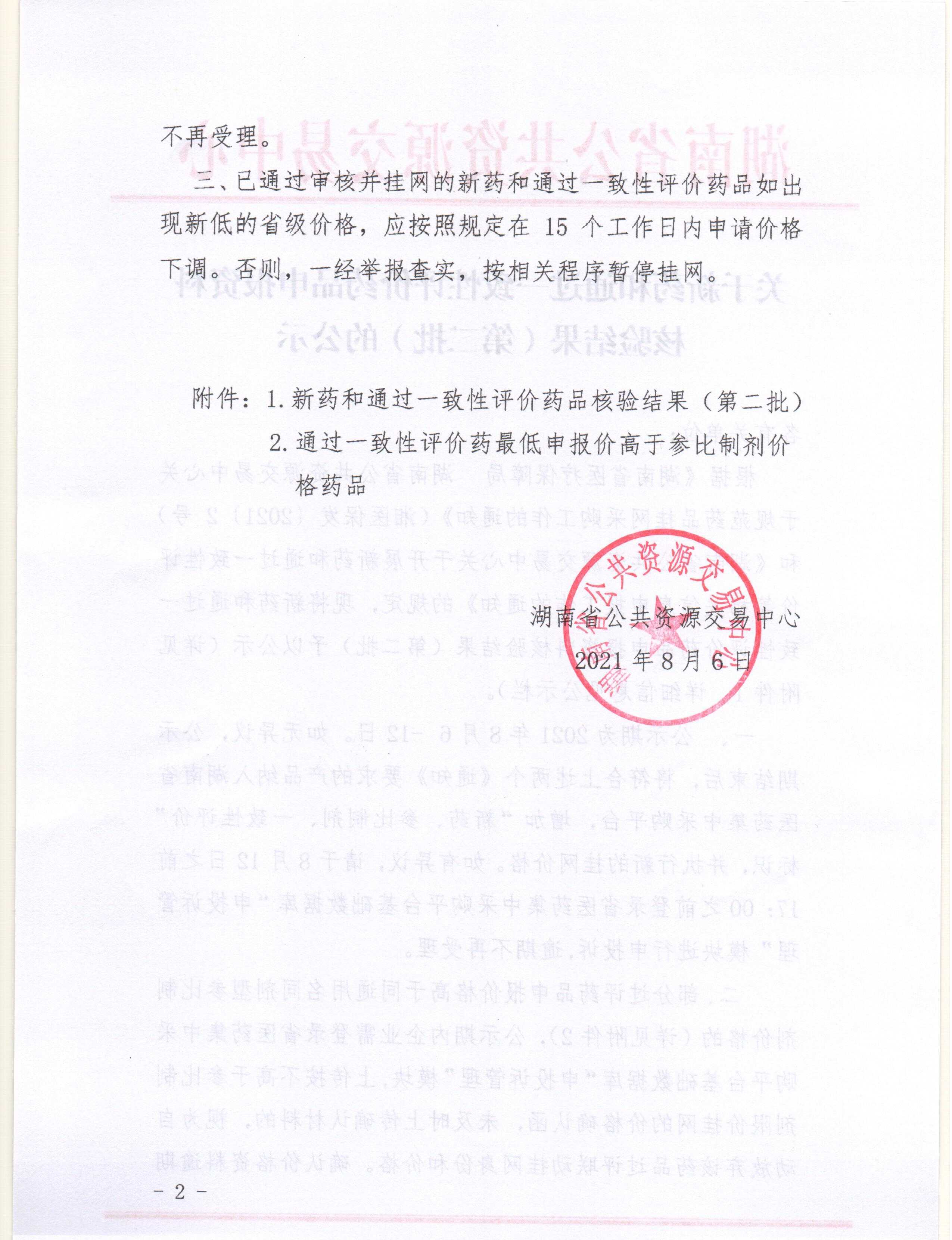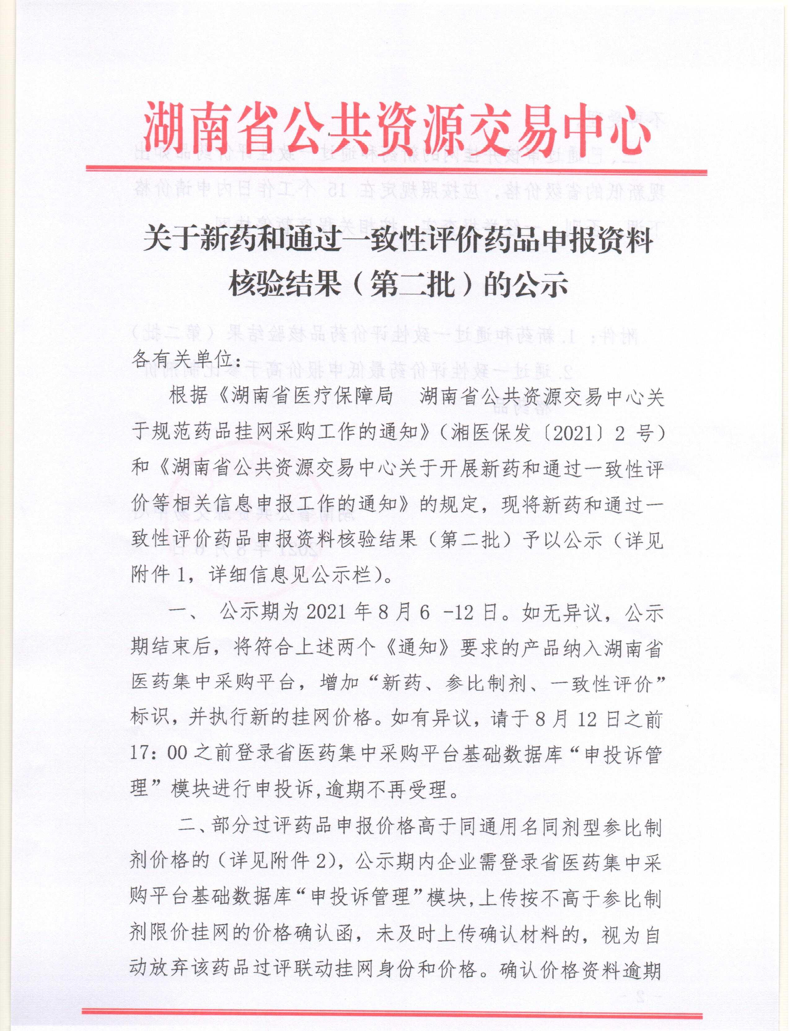 【湖南】2021年湖南省关于新药和通过一致性评价药品申报资料核验结果(第二批)的公示