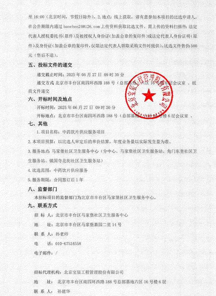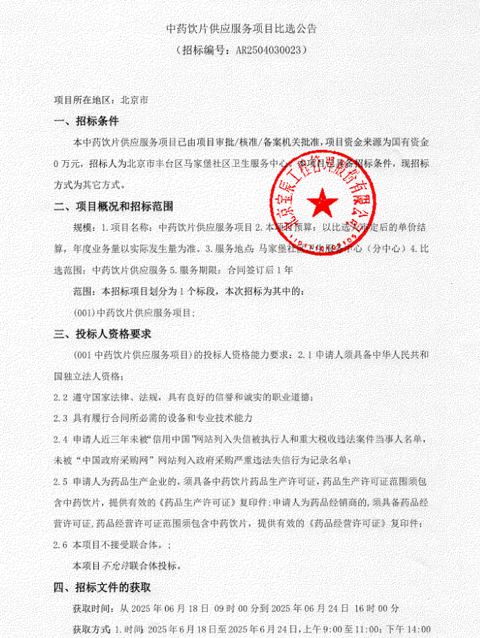 【北京市丰台区马家堡社区卫生服务中心】北京市丰台区马家堡社区卫生服务中心中药饮片供应服务项目比选公告