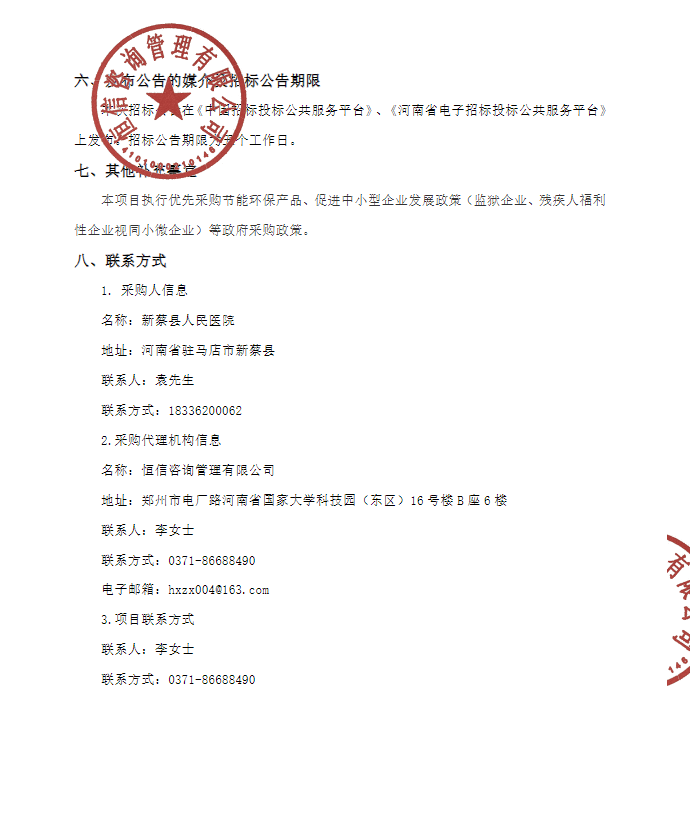所属项目:河南省驻马店市新蔡县人民医院院标