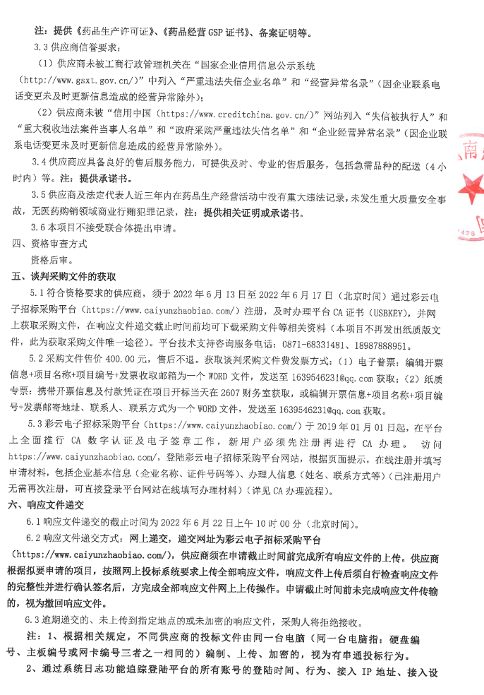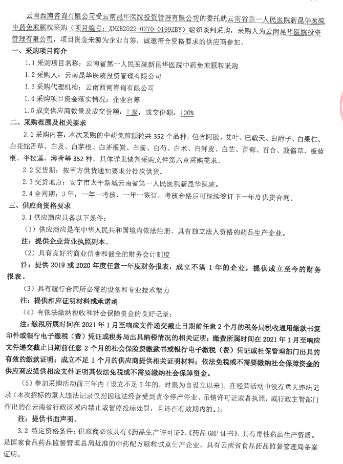 【云南省第一人民医院新昆华医院】云南省第一人民医院新昆华医院中药免煎颗粒采购谈判采购公告