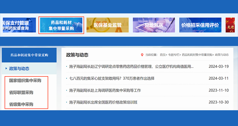 “国家组织集中采购”“省际联盟采购”“省级集中采购”三个子栏目内容将同步在国家医保局公众号上发布。