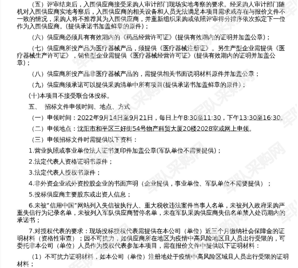 【军队采购网】药材定点采购(2022-JKEDJD-F1015)