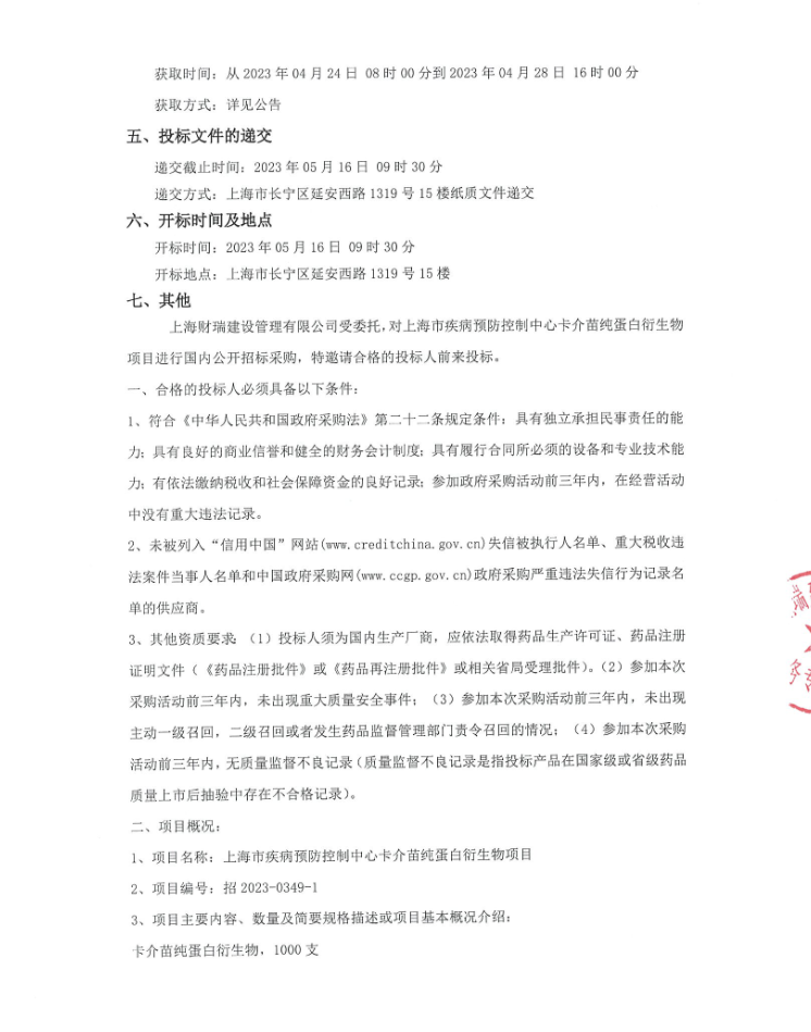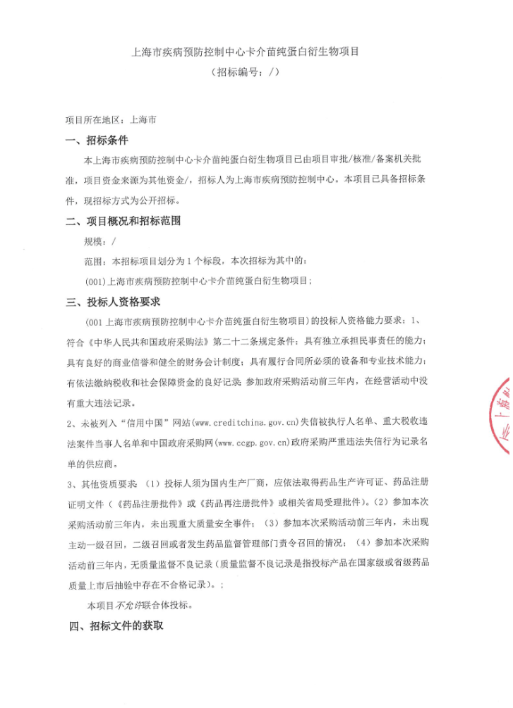 【上海市疾病预防控制中心】上海市疾病预防控制中心卡介苗纯蛋白衍生物项目