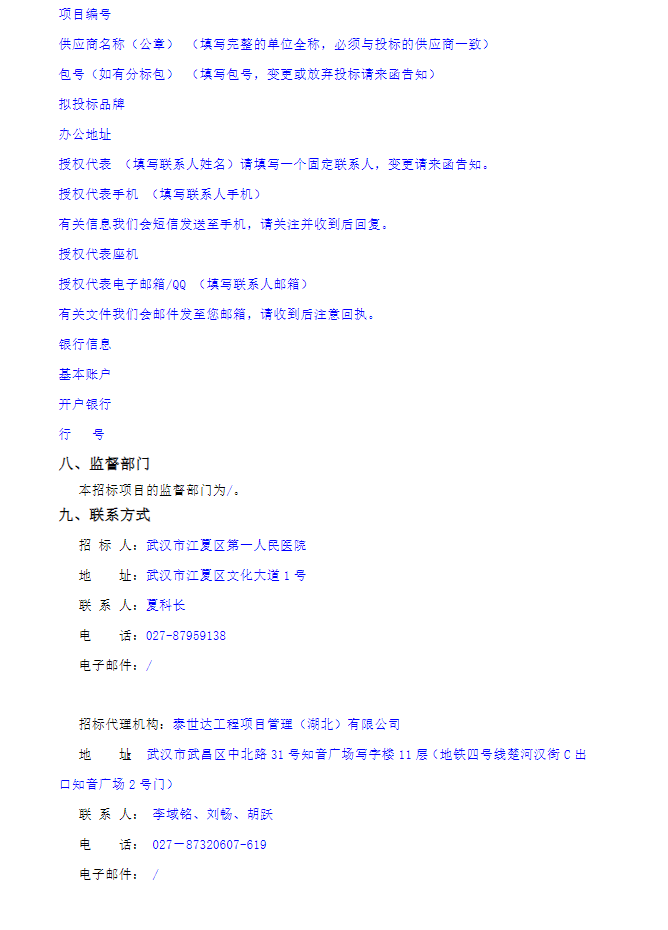 所属项目:湖北省武汉市江夏区第一人民医院院