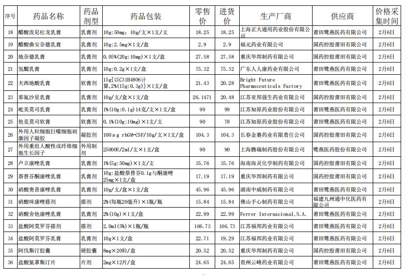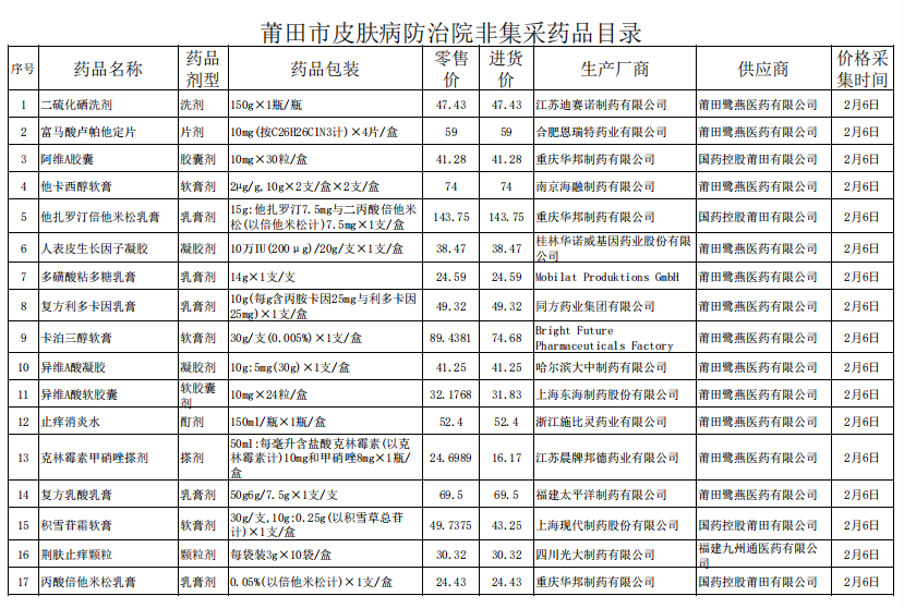 【莆田市皮肤病防治院】福建省莆田市皮肤病防治院非集采药品目录
