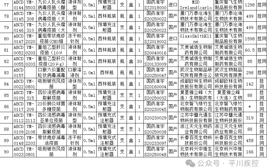 为进一步规范我区非免疫规划疫苗采购与供应管理,保障接种工作科学有序开展,依据《中华人民共和国疫苗管理法》、《甘肃省非免疫规划疫苗阳光采购实施方案》,秉承公开、公平、公正的原则,按照平川区疾控中心非免疫规划疫苗遴选制度,选出 90 个产品为平川区免疫规划类疫苗采购目录。现将2026年度非免疫规划疫苗阳光采购动态调整结果予以公示,公示如下: