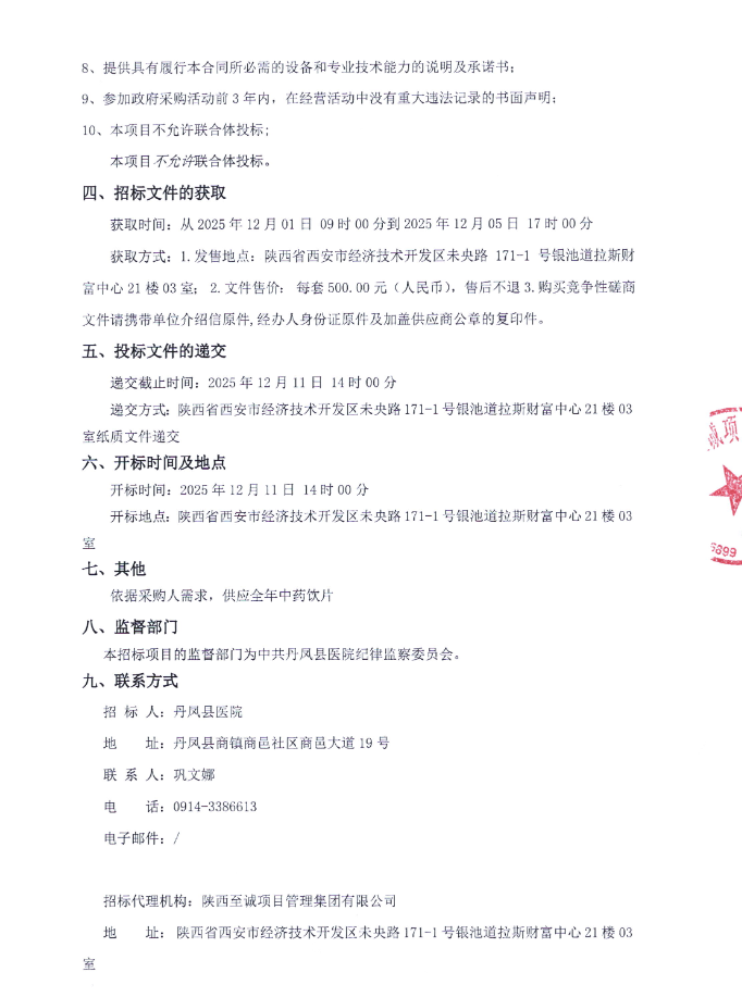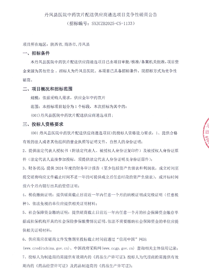 【商洛市丹凤县医院】陕西省丹凤县医院中药饮片配送供应商遴选项目竞争性磋商公告