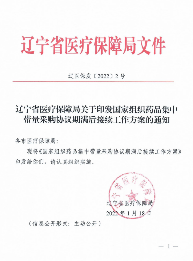 【辽宁】辽宁省医疗保障局关于印发国家组织药品集中带量采购协议期满后接续工作方案的通知