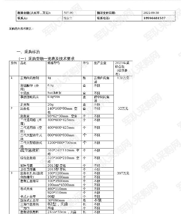 【军队采购】某单位药材采购需求公示 (2022-JQGCGZ-W1001)