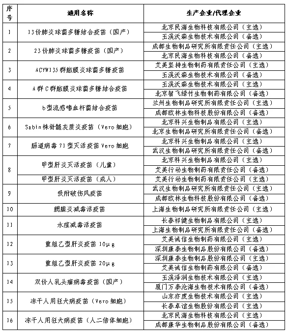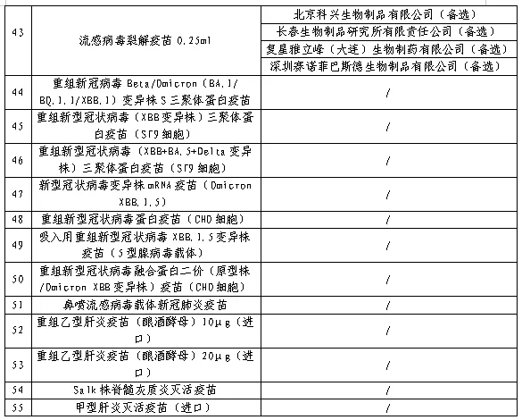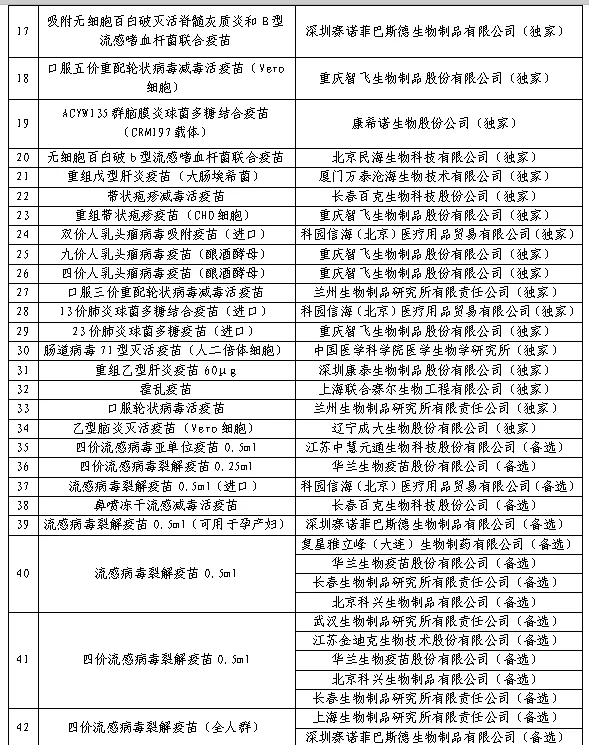 备注:序号35-43的流感疫苗企业均为备选企业,顺序不分先后。
