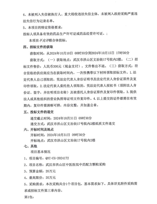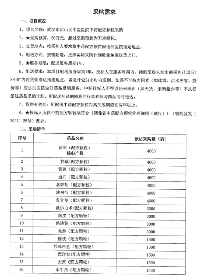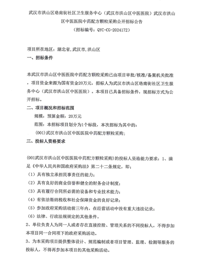 【武汉市洪山区珞南街社区卫生服务中心】湖北武汉市洪山区珞南街社区卫生服务中心(武汉市洪山区中医医院)武汉市洪山区中医医院中药配方颗粒采购公开招标公告