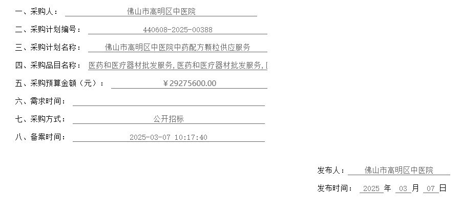 【佛山市高明区中医院】广东省佛山市高明区中医院中药配方颗粒供应服务