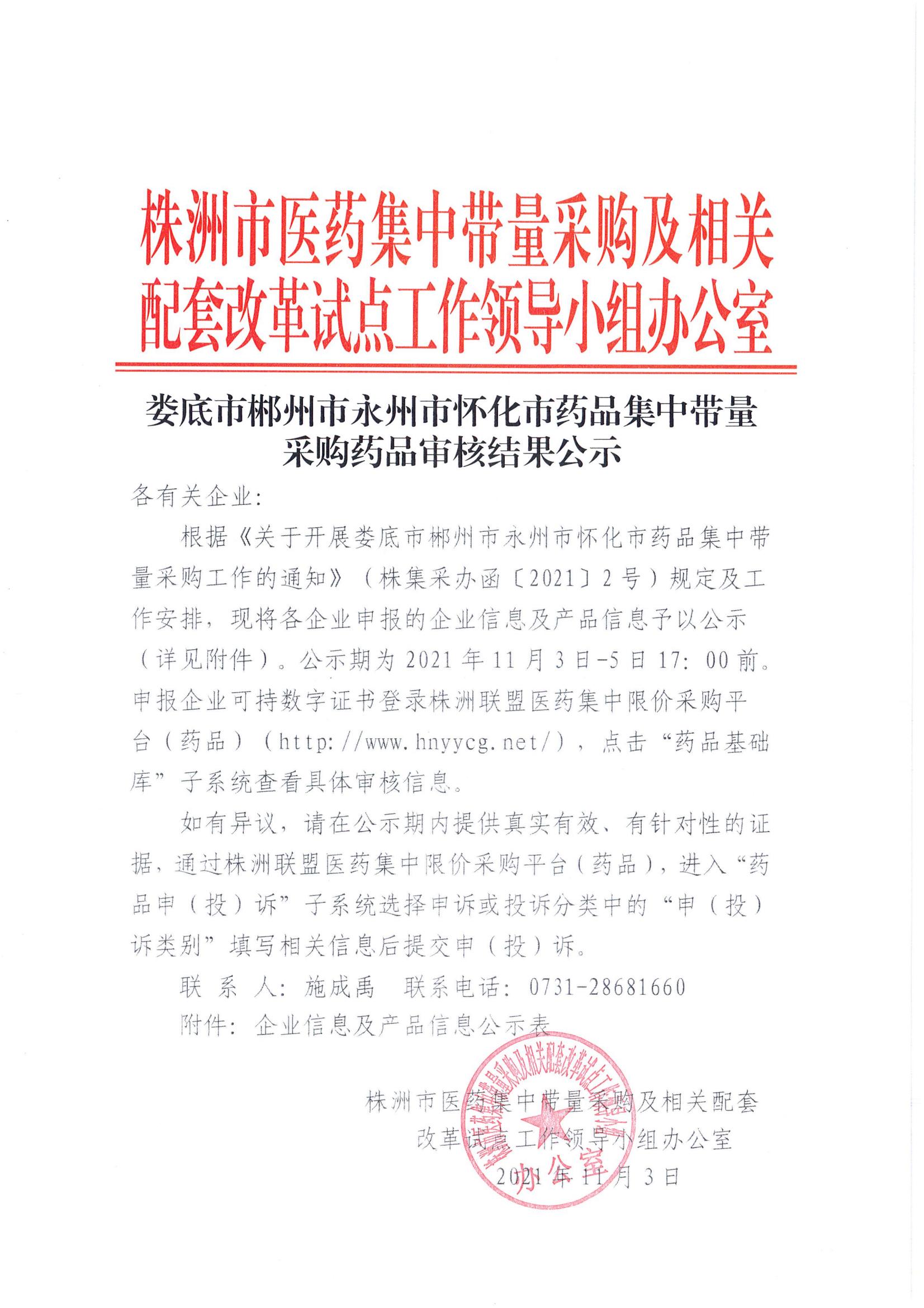 【娄底】湖南省娄底市郴州市永州市怀化市药品集中带量采购药品审核结果公示